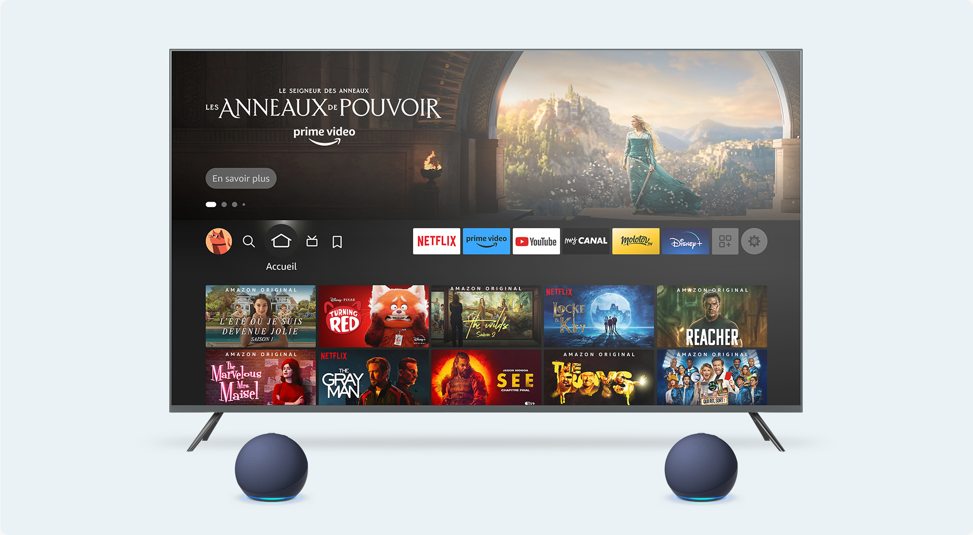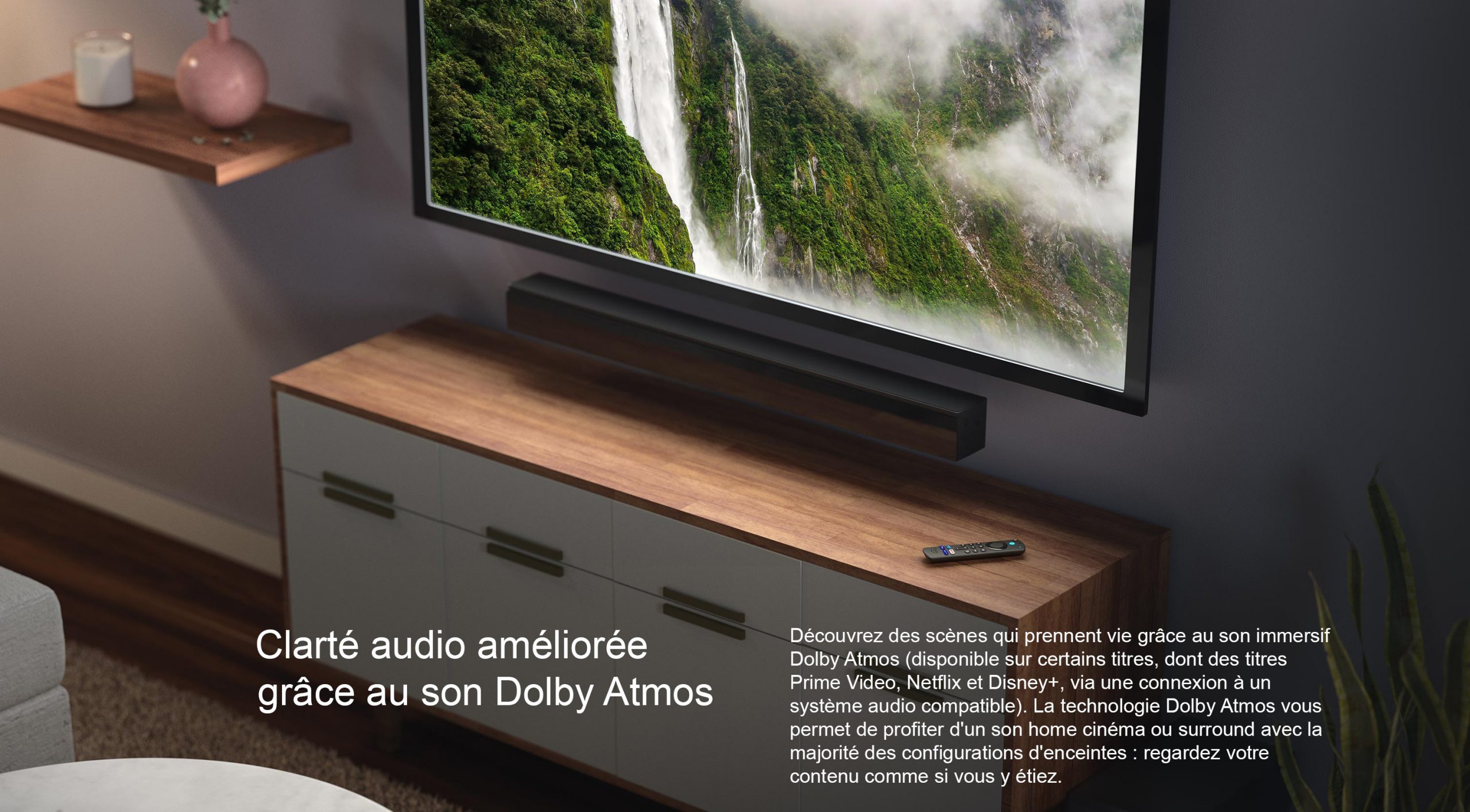 Configurez votre home cinéma Alexa et associez-le à d’autres appareils compatibles afin de profiter d’un son immersif lorsque vous regardez la TV. En savoir plus sur le home cinéma Alexa