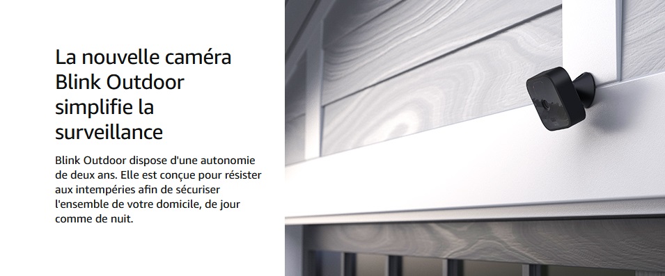 Dotée d’une puce à la technologie Blink exclusive, la caméra Blink Outdoor est alimentée par deux piles AA au lithium qui lui permettent de bénéficier d’une autonomie pouvant aller jusqu’à deux ans. Vous pouvez voir ce qu’il se passe à l’intérieur et aux alentours de votre domicile, sans avoir à vous inquiéter de changer sans arrêt les piles.