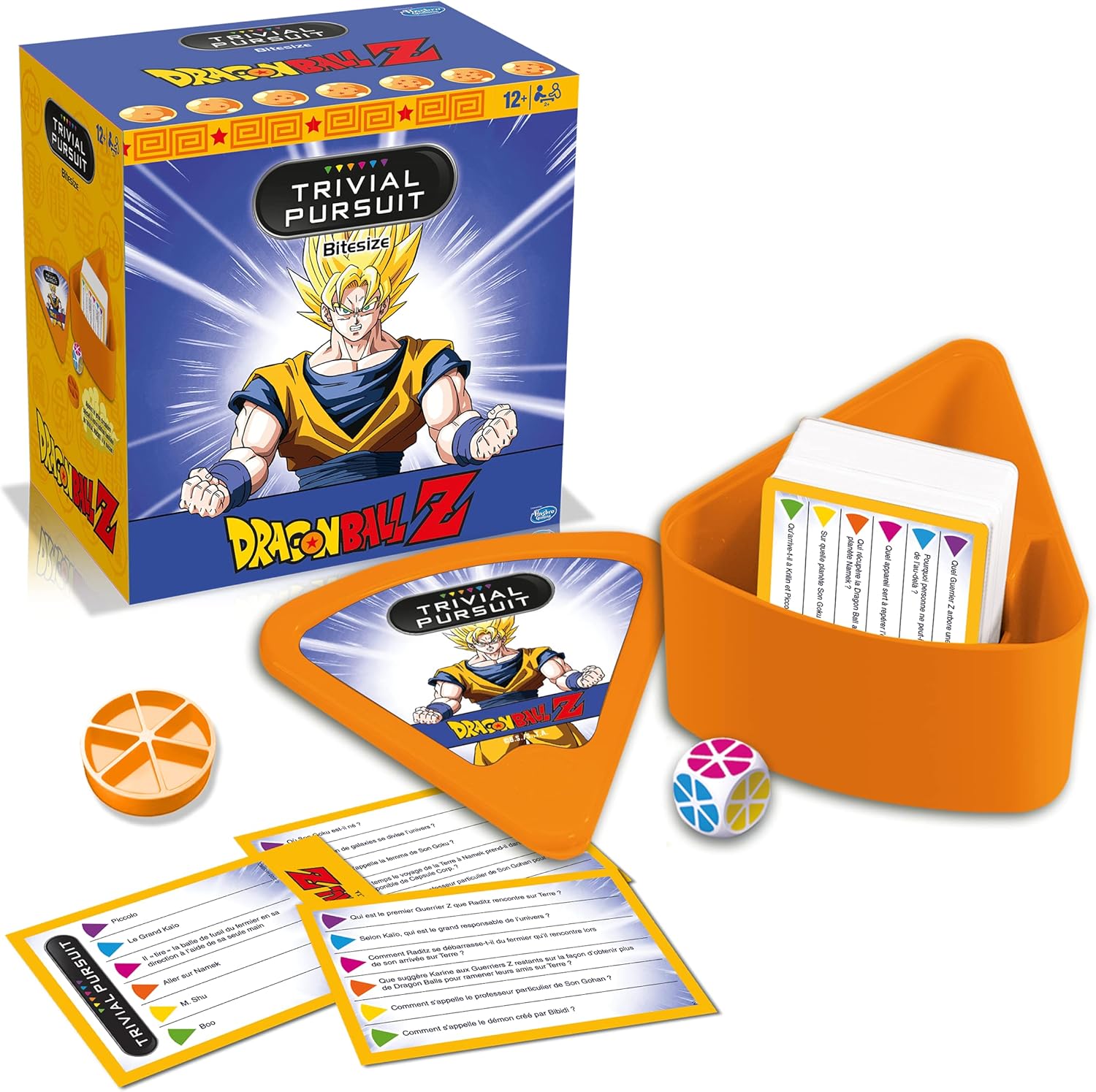 - Trivial Pursuit Dragon Ball Z est un jeu de questions-réponses passionnant qui plonge les joueurs dans l’univers captivant de la célèbre série animée. Les questions couvrent divers aspects de la série, notamment les personnages, les combats, les techniques et les arcs narratifs. Ce jeu est composé de jeux de cartes qui rendent l’expérience de jeu pratique et facile à gérer. Les fans de Dragon Ball Z apprécieront de tester et d’approfondir leurs connaissances sur cet univers fascinant tout en s’amusant en famille ou entre amis.
